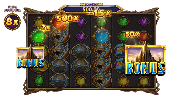 採用「任何位置都可支付」的機制,無需特定連線位置,只要轉出符號即可獲勝。搭配隨機倍數符號,單轉最高可贏得500倍投注獎金。